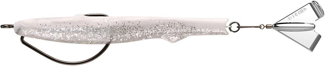 The 13 Fishing Motor Boat is a unique lure that combines a pre-rigged weedless TPE soft plastic jerkbait with a hard prop buzz blade. This innovative design effectively allows you to throw a buzzbait into places where you previously had to worry about weeds and snags. Molded with a slender profile baitfish body shape, the 13 Fishing Motor Boat uses a disruptive buzz blade attached to the rear of the bait, which gives it the ability to slither through vegetation and cover without fouling the blade or snagging the open hook like a traditional buzzbait. Its frameless design and compact profile also reduce wind resistance, allowing you to make long, accurate casts with ease.
