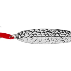 The Bay de Noc Swedish Pimple is a classic jigging spoon with a simple, yet reliable design. An absolutely superb jigging lure, this type of spoon has been widely used in Sweden for over 100 years with exceptional results on both fresh and salt-water fish year round. Their proven multi-species producer; shown to reliably catch walleye, trout, Coho salmon, northern pike, bass, panfish and many saltwater species. Spoons come pre-rigged with a colored flapper for extra action and a super-sharp treble. All Bay de Noc lures are proudly made in America with dedicated craftsmanship put into each and every lure. Available in 8 colors and 3 sizes.