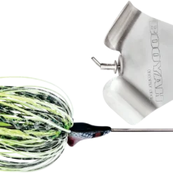 The Booyah Squelcher is a wire buzzbait with an oversized blade that produces a high-pitch, metallic “squaking sound.” This unique sonic profile is designed to add variety to your topwater presentations and call up big bass lurking below. Built with a sturdy wire frame, the Booyah Squelcher Buzzbait’s oversized bladed also has a unique S-curve that butts up against the rivet to create intense surface agitation with each revolution. The blade also provides increased lift, allowing it to be retrieved slower than other buzzbaits without sinking.