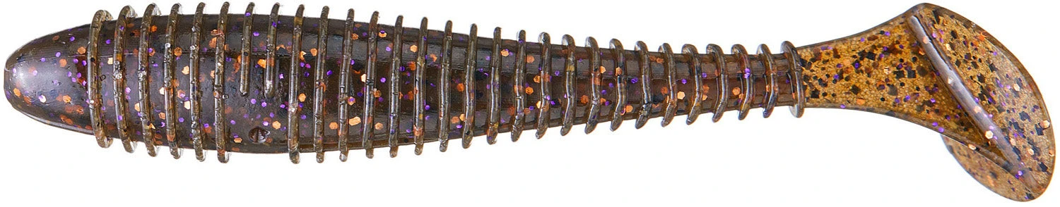 The Keitech Fat Swing Impact 3.3 inch is a small, ribbed, finesse paddle tail swimbait that redefines swimbait performance. Keitech’s revolutionary two-tone injection process uses several different types of salted plastics to achieve perfect balance and action. The most impressive feature of these great swimbaits is the ability to maintain a perfect swimming motion at any retrieve speed. The tapered design ringed body distorts the shape to a more natural appearance. The center rigging line provides the perfect position to ensure the bait is rigged correctly. This small size is great on a drop shot rig or Ned rig too.