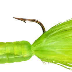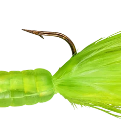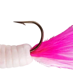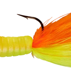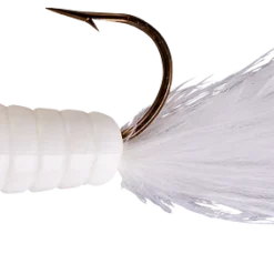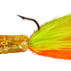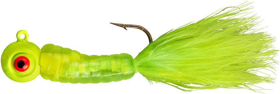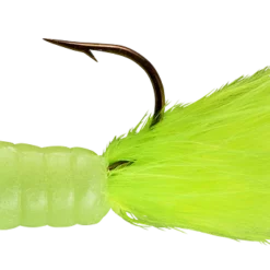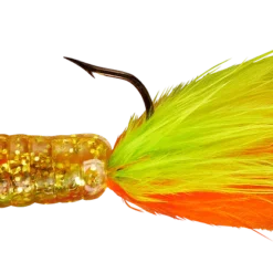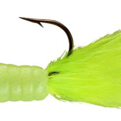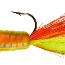 The most alluring fish-catching characteristics across the jig family come together in the popular Fuzz-E-Grub: a soft plastic grub with a hair tail pre-rigged on a lead head jig. The hair produces tons of underwater action, even in cold water. Fuzz-E-Grubs are very effective when fished plain, or tip them with a minnow, crawler, leech, or other favorite live bait. Can be vertically jigged or cast and retrieved. Bass and walleye love ’em! Available in 10 colors and 1/8 and 1/4 ounce weights.