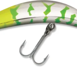 The Luhr-Jensen Rattling Kwikfish K16 are 5 1/2 inch diving plug lures designed for salmon, steelhead, and lake trout. Kwikfish are full-throttle, wide-action, leave-no-doubt lures that challenge game fish small and large alike. Their aggressive action forces a response from fish, often generating the most savage strikes imaginable. This size is great for large steelhead and silver salmon as well as king salmon and lake trout. For maximum success, tune the screw eye on the face of the plug to achieve an even side-to-side action. Using small adjustments, turn the screw eye in the opposite direction that the lure is favoring, until it tracks straight. The Rattling Kwikfish K16 is rigged with size 3/0 treble hooks and dives unassisted to 15 to 17 feet deep.