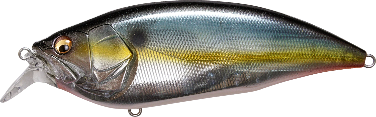 The Megabass Big-M 2.0 is the newest and shallowest running member of the Megabass’ Big-M Series of oversized, flat-sided crankbaits. Measuring 5 inches and weighing 2 ounces, this a big crankbait designed for catching big bass in the 6 foot depth range. It uses a unique scoop-like bill design that channels water to produce a hard rolling and flashing action, making the most of its flat-sided body design.