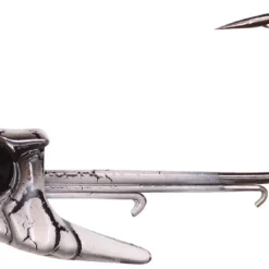 - Elongated chin that snuggly fits underneath soft plastic bait and prevents rolling and helps maintain the bait’s horizontal position.