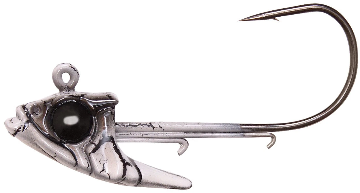 The Megabass Body Balance Swimbait Jighead is a swimbait jig head. It features an elongated chin that snugs underneath soft plastic, prevents rolling, and maintains the bait’s horizontal position. It also boasts big, life-like 3-D eyes and subtle gill plate details. The bait is fitted with a double wire baitkeeper and a razor-sharp hook.