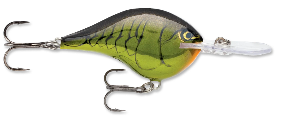 The Rapala DT10 (Dives-To) series of crankbaits dives fast to a preset 10 foot depth and stay in the “strike zone” longer than any than other crankbait on the market. Made from the top seven percent of balsa wood, this consistently perfect wood combined with carefully placed internal weights, tapered fuselage and thin tail design creates the ultimate crankbait action, found only in the DT family. Ultra-thin polycarbonate lip digs the bait down quickly to desired depth. Swimming with a side-to-side action only balsa crankbaits can achieve, the DT cranks deep, yet pulls with ease.