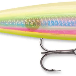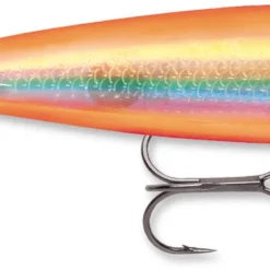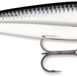 The Rapala Skitter Walk 08 Topwater is a topwater walker. The Skitter Walk 08’s superior construction assures a perfect swimming bait right-out-of-the-box. Toss it out. Pump. Reel. Pump. Reel. You’re “Walking-the-Dog”. Weighted tail keeps bait in natural position even at rest. Large internal rattles create a rhythmic side-to-side motion-and-sound combination that imitates wounded or fleeing baitfish. All feature 3D holographic eyes and you can choose from appetizing painted or chrome color patterns. All are equipped with VMC® black nickel treble hooks. Available in more than 20 different colors.