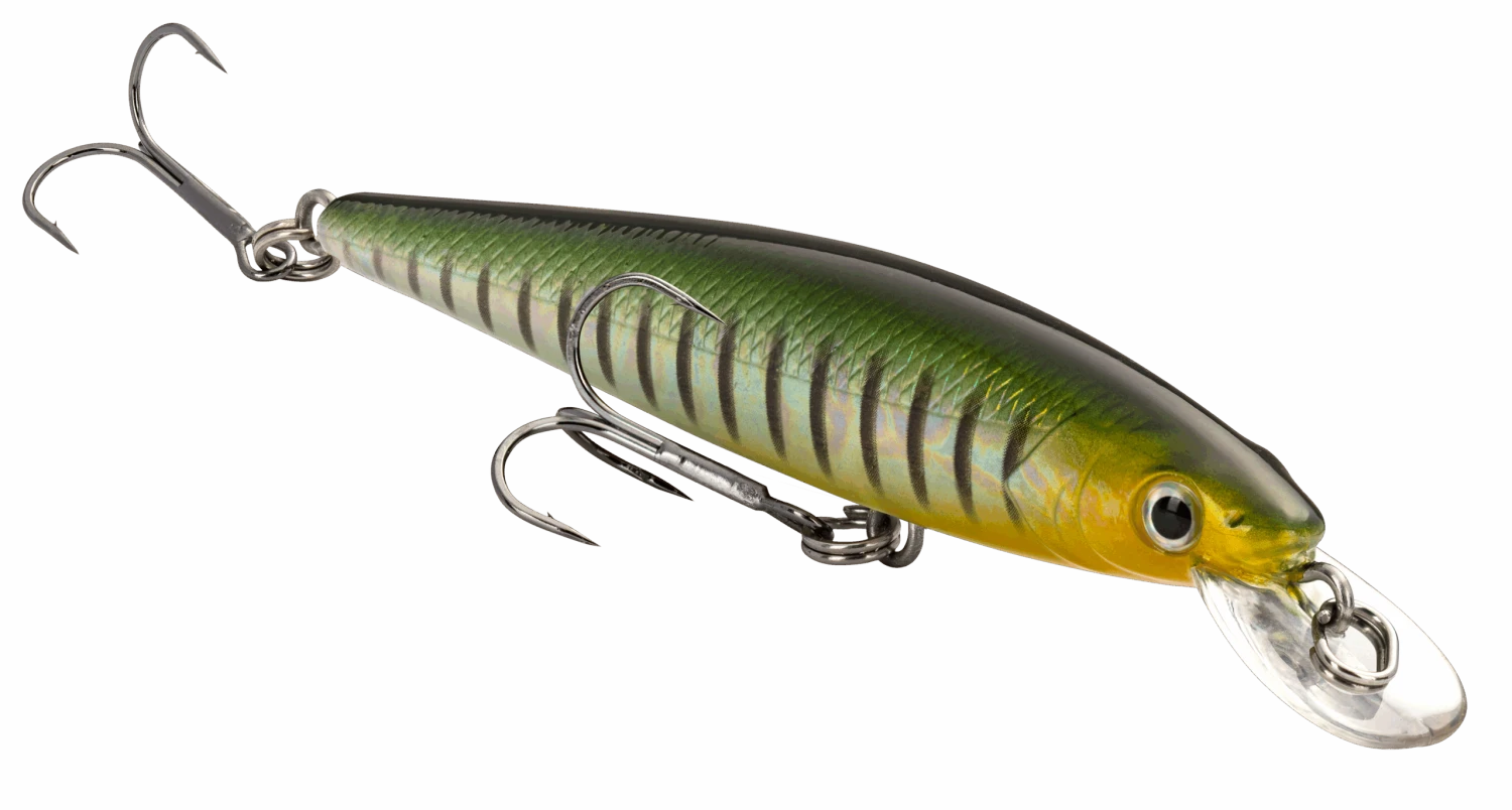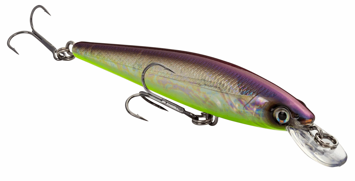 The Strike King KVD 100 Series Jerkbait is a new smaller size of the existing KVD Series 2-Hook Jerkbaits that measures 3 1/2 inches and weighs 1/4 ounce. Developed by Kevin VanDam during an extensive testing period, the KVD 100 is designed to be a very finesse-oriented hard bait that exhibits an erratic wiggling action and wide side-to-side motion when jerked. Diving 2 to 4 feet with a suspending buoyancy, the KVD 100 is a must-have for when you’re fishing a tough late Fall/early Winter bite and need to downsize your profile.