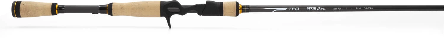 - The TFO Resolve Bass series rods feature cork grips, soft-touch, feel-through guide frames and a sensitive carbon fiber fabric blank to let you feel what’s happening underwater.