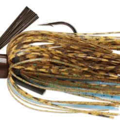 The Terminator Pro’s Jig is a universal jig for flipping, pitching and casting in and around cover. It features a custom silicone full skirt, color matched brush guards, single rattle, and a heavy VMC Black Nickel hook. It has a unique head design that is perfectly suited for penetrating vegetation, working around structure, or open water fishing.