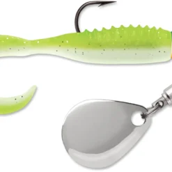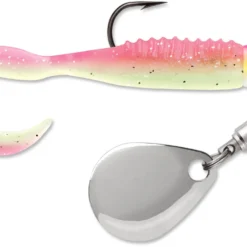 The VMC Curl Tail Spin Jig is a small curly tail bait rigged on a ball head jig with a swivel mounted Colorado blade. It comes pre-rigged a TriggerX® Curl Tail Body with a long micro-thin tail that swims with a light and subtle vibration. Perfect choice for fishing for bluegill, crappie, and other panfish in stained water where you want some extra flash and vibration. Equipped with a premium VMC power gap hook that has a 5% wider gap than traditional jig hooks.