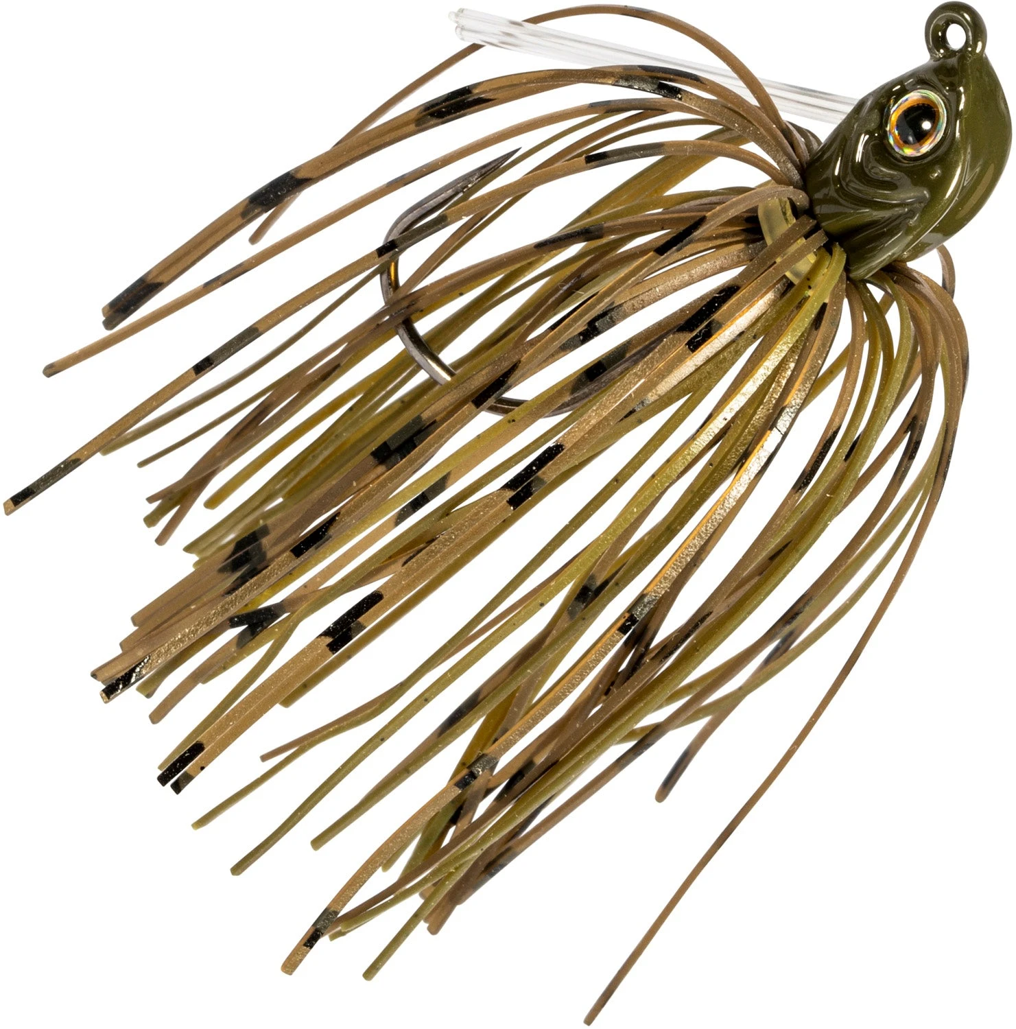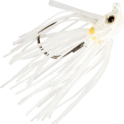 Precision-engineered and perfectly balanced, the Z-Man Midwest Finesse Swim Jig is built on Z-Man’s patented StabilTrackâ„¢ jighead design. The head sports a grooved underbelly that prevents rolling at all retrieve speeds. Lifelike 3D eyes accentuate the effect, while an agile brush-guard and sparsely skirted configuration matches light-line, finesse applications and pint-sized trailers. A custom lightwire needlepoint 3/0 hook allows for effortless hooksets with light tackle. Hook is armed with a welded wire keeper for easy rigging and holding ElaZtech trailers, such as the Baby GOAT or Slim SwimZ, securely. Six color patterns and three sizes (5/32-, 3/16- and 1/4-ounce) available.
